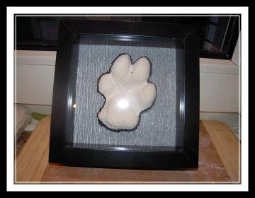 lach nein das ist mal eine hunde pfote aber v katzen mache ich das auch ich nehme mit einem speziellen abdruck material einen negativ abdruck und giesse diesen aus bearbeite ihn und lackier ihn anschliessend zum schluss in einen 3D Rahmen fertsch :)= schau doch mal hier