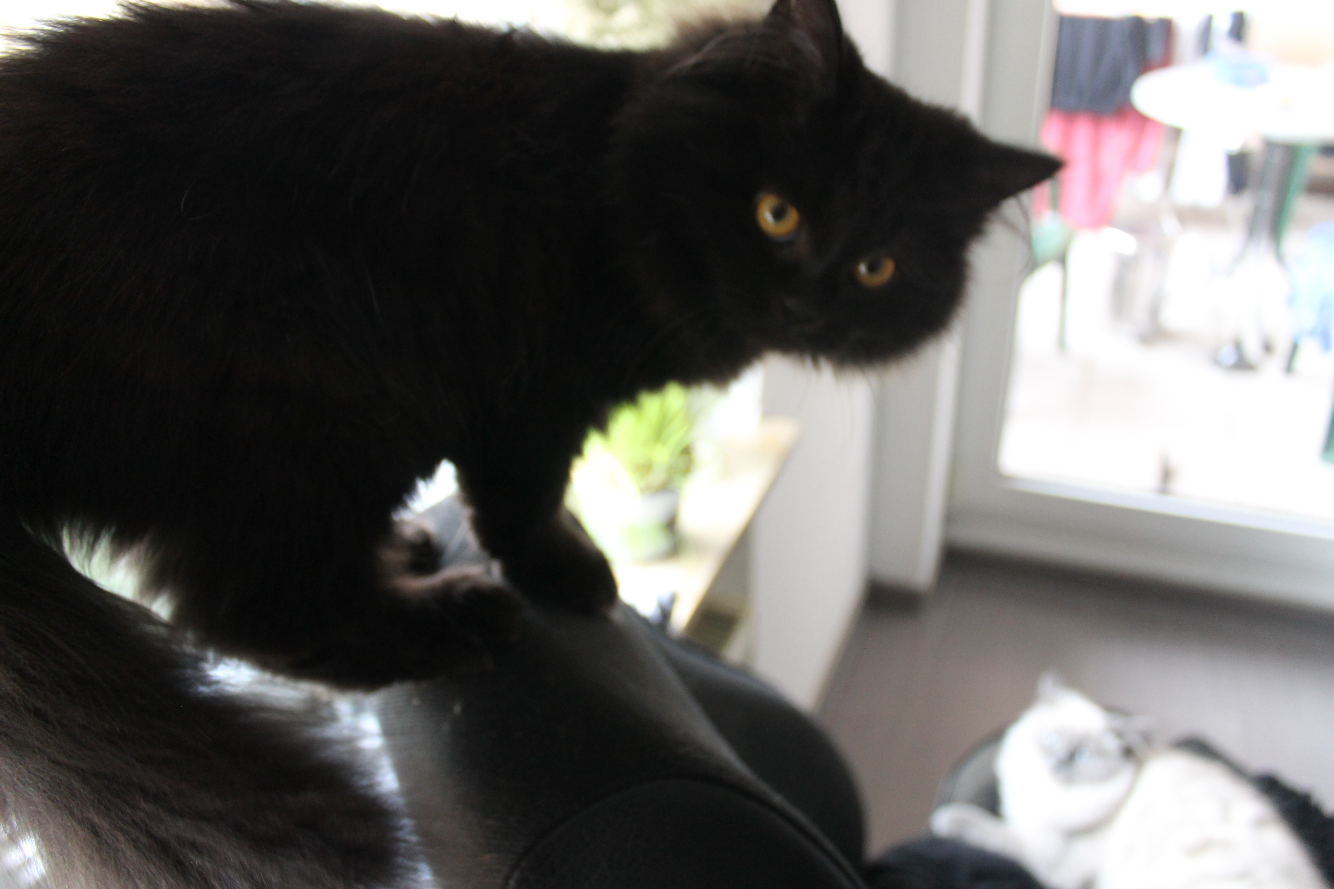 Und beide spielen miteinander, das schwarze Kätzchen ist viel wilder als das weiße, holt sie auch manchmal vom Kratzbaum runter und rollt einpaar Runden mit ihr aufm Boden rum, putzt sie den halben Tag am Kragen und schaut immer wo sie ist wenn sie miaut